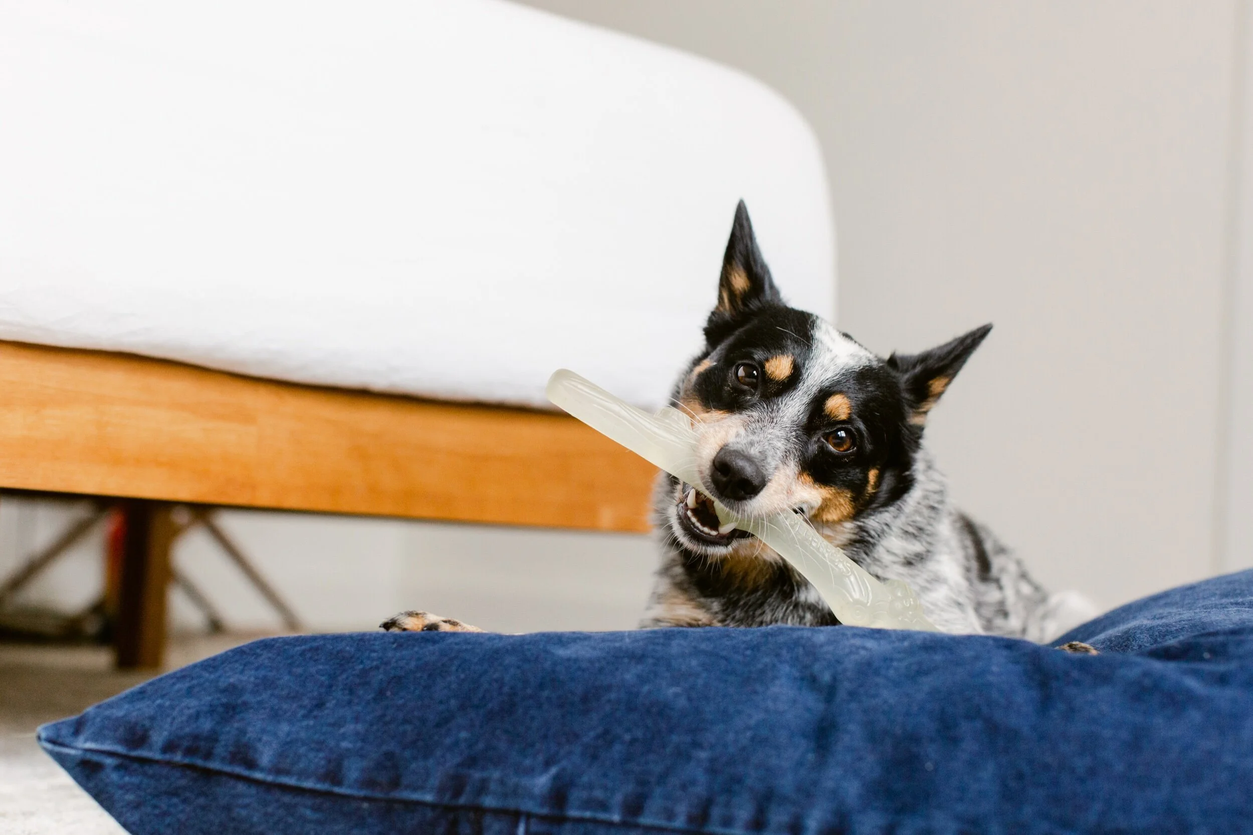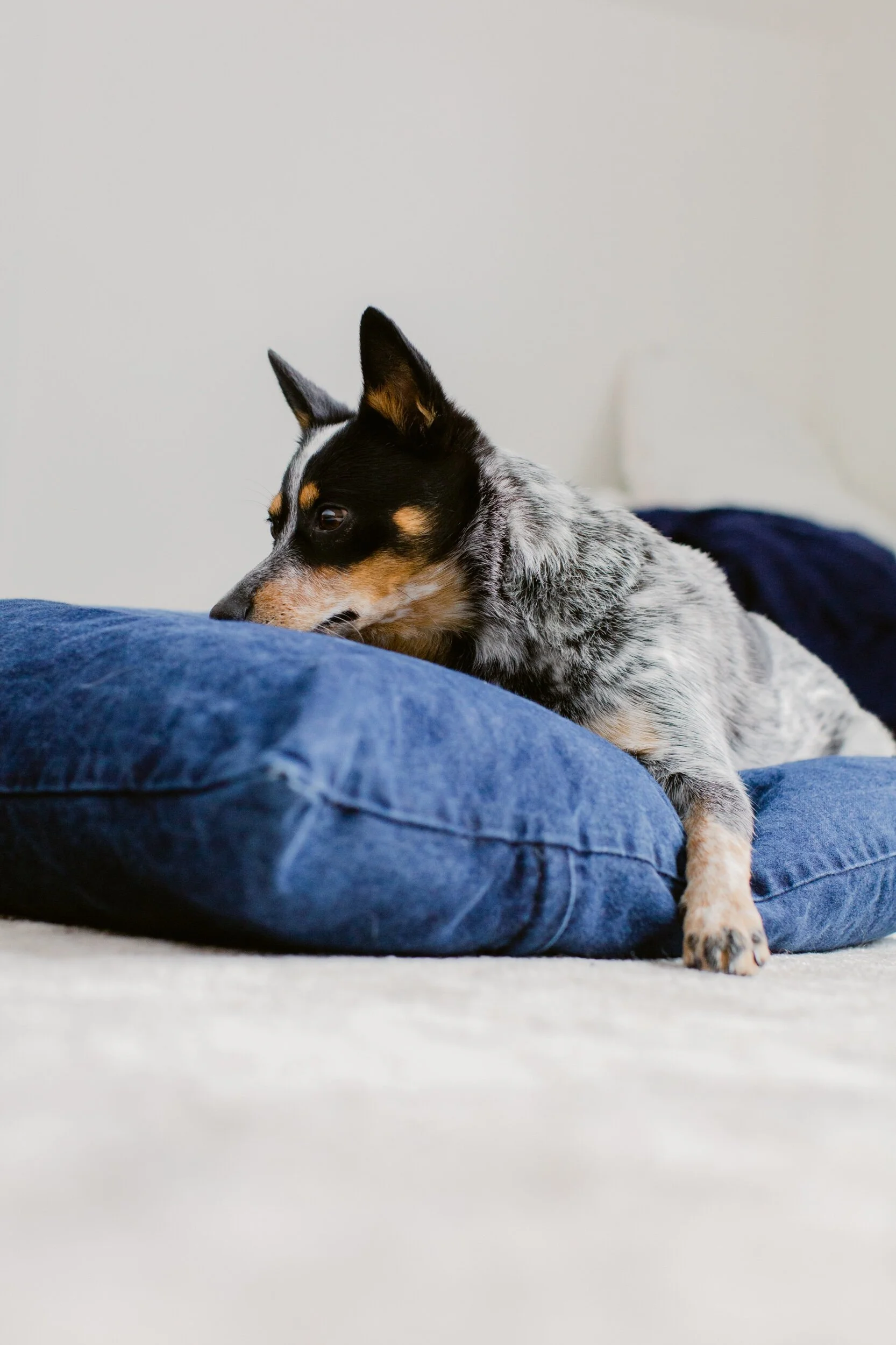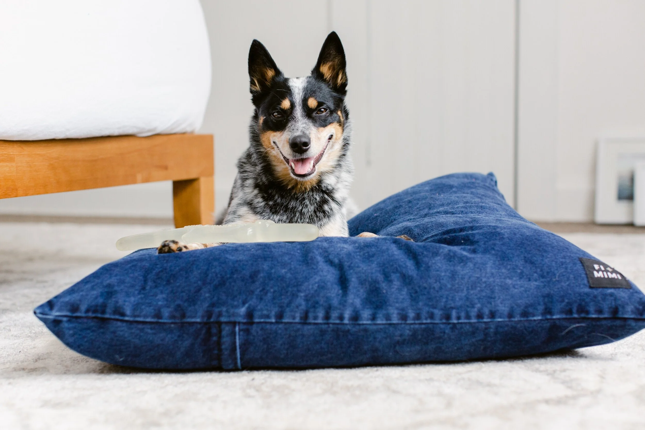 This is a pillow style dog bed. It is available in 40 x 40 (large), 40 x 30 (medium) and 30 x 30 (small) inch sizes and is approximately 5 inches thick. Please see our blog for sizing recommendations and care instructions.